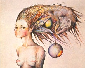 It would even take until 1976, before I would renew my aguaintance with the work of the artist Leonor Fini. It was on a late evening in the fall of that year somebody unexpectedly knocked on the door of my antique shop. It was the famous Dutch pencil artist Corstiaan de Vries, who just had to come in, because it was love at first sight between him and two very rare 18th century Venetian lanterns.