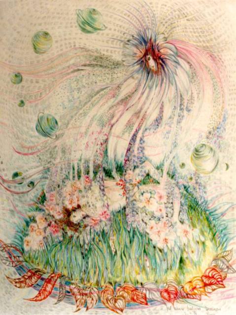 I myself also made a colored pencil drawing of a sort of spring goddess.
